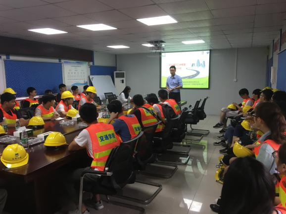 9月7日上午,南京工業(yè)大學(xué)交通學(xué)院一行80余學(xué)生在校方老師的帶領(lǐng)下,來到了工程一分公司施工的紅山路隧道項(xiàng)目經(jīng)理部進(jìn)行參觀學(xué)習(xí)。在項(xiàng)目部門口,經(jīng)過簡要介紹后,一行人分為兩組,一組在項(xiàng)目經(jīng)理丁健的帶領(lǐng)下參觀施工現(xiàn)場(chǎng),另一組由公司市場(chǎng)部經(jīng)理徐雋組織在項(xiàng)目部會(huì)議室聽取紅山路項(xiàng)目施工工藝介紹及大校場(chǎng)隧道技術(shù)工藝總結(jié),之后兩組人員輪換,讓每個(gè)學(xué)生都可以從理論到現(xiàn)場(chǎng)對(duì)整個(gè)隧道施工有一定的了解。